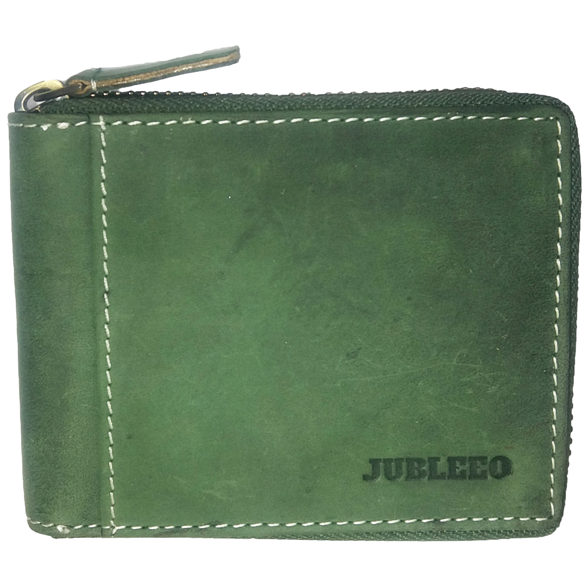 Jubleeo Leather Round Zipper Green Pocket Mens Wallet